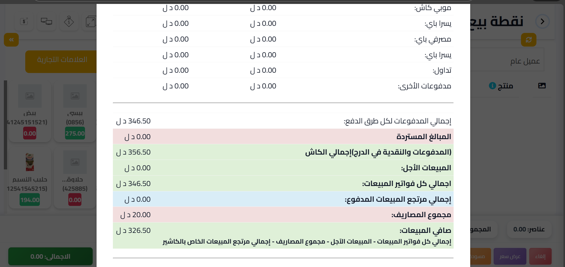 كل موظف: المبيعات، الورديات، أوقات الدخول والخروج.