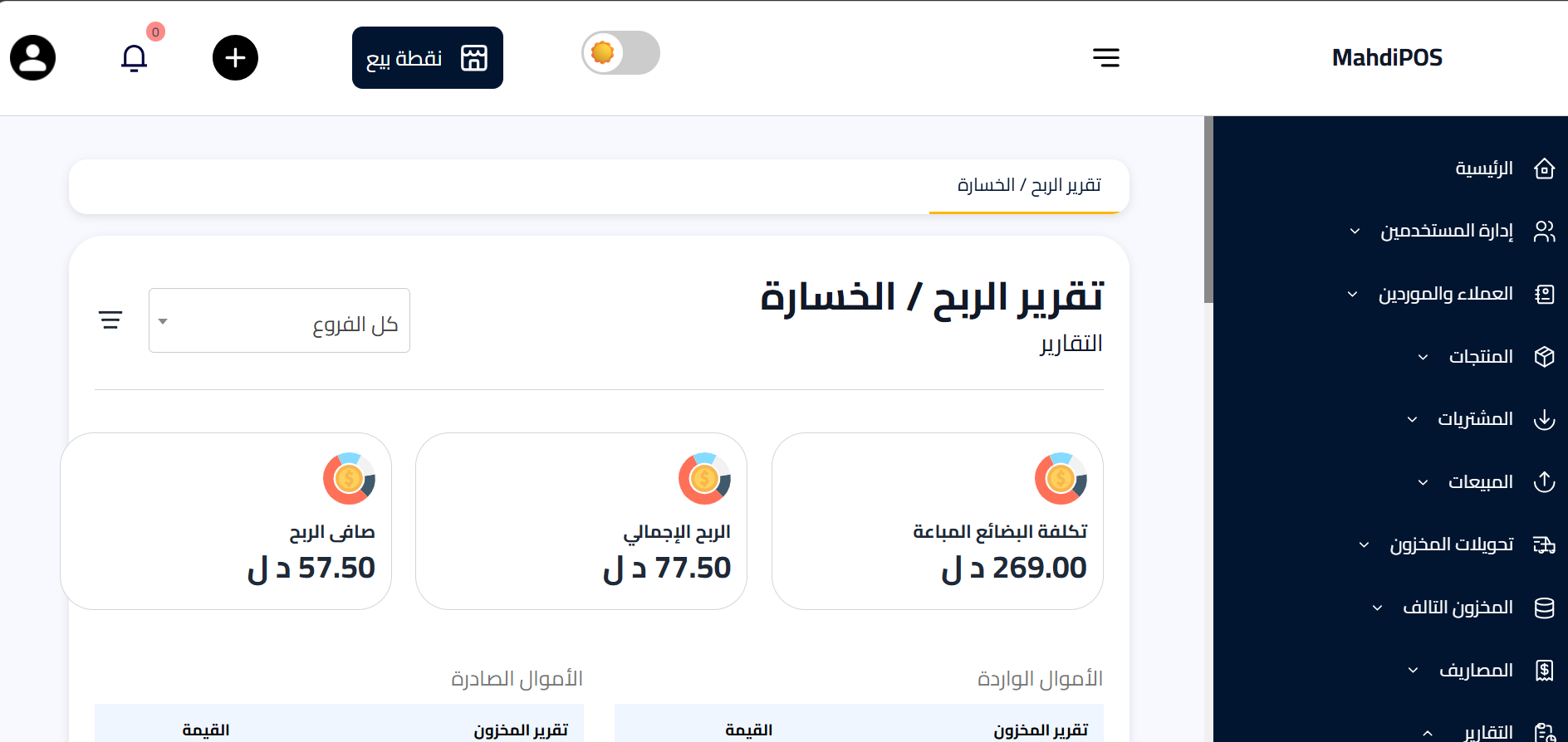 أرباح وخسائر شاملة: حسب المنتج، الفرع، التصنيف، العميل، التاريخ.