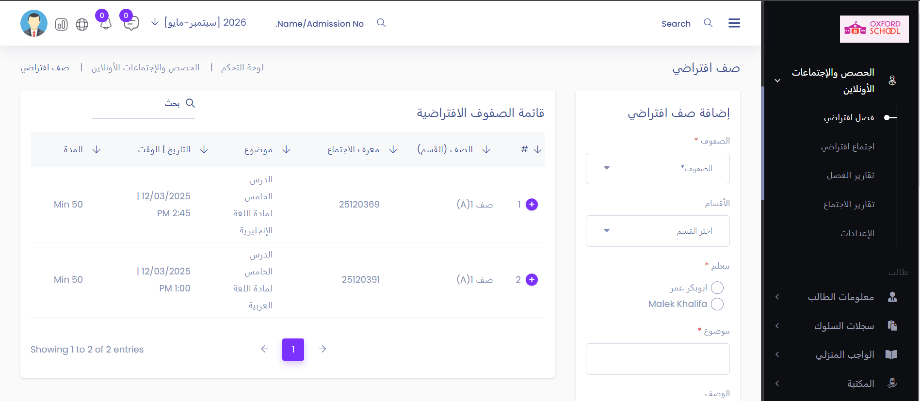 وتنظيم الدروس والحصص المباشرة أونلاين.