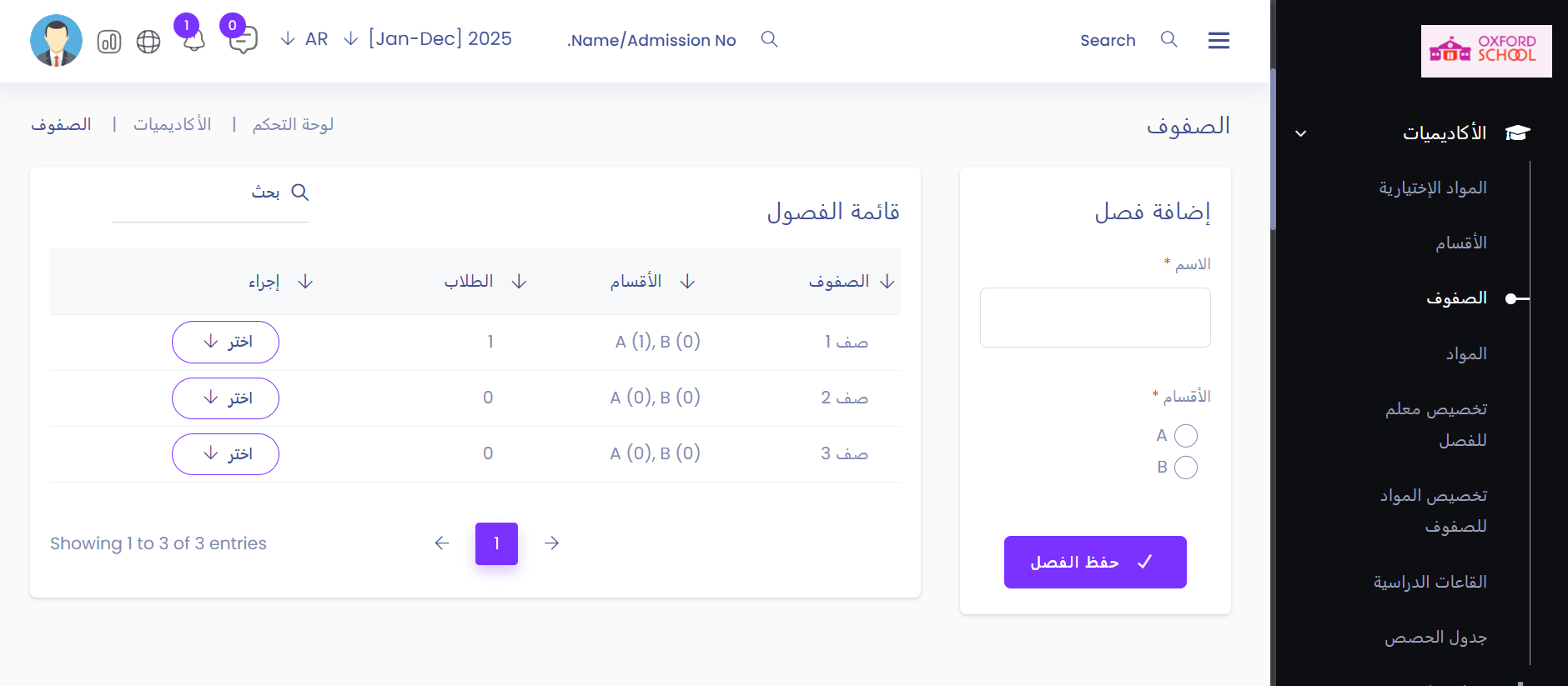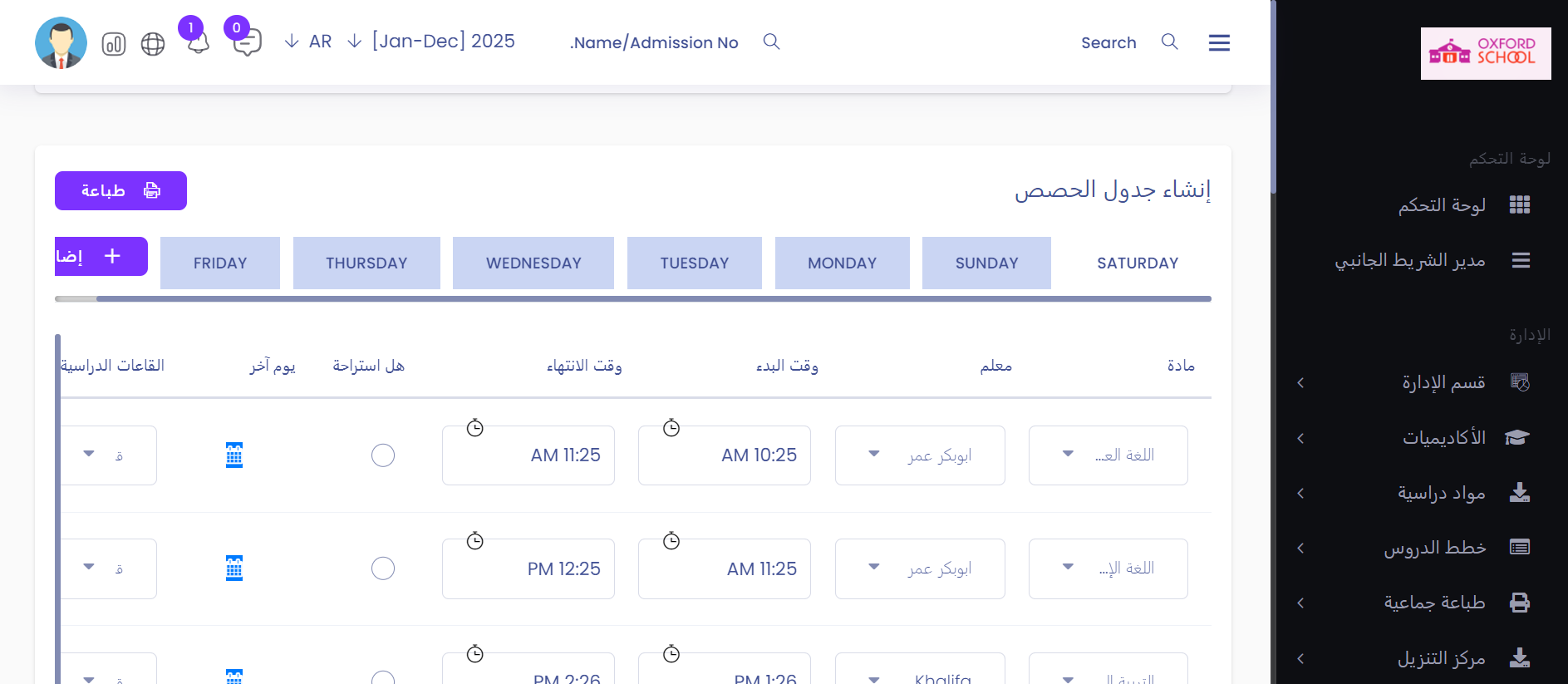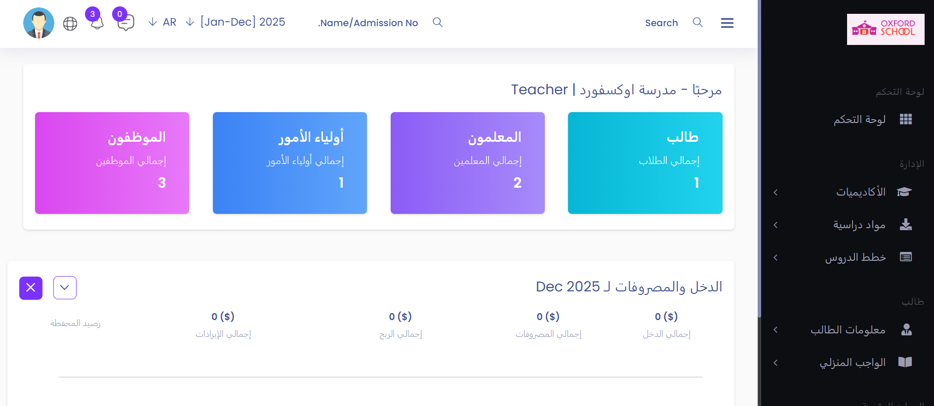 🏫 مميزات لوحة التحكم الإدارية (الإدارة)